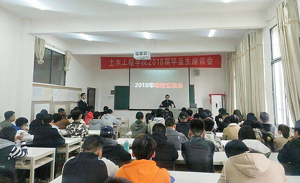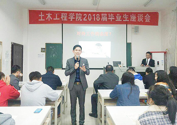 11月18日,我校土木工程学院举办2018年校友交流活动,特邀请了13级优秀毕业生代表康志军、李兴华等五人,来我院与同学们做成长交流。学院党总支书记龙玉林、学工副院长石湘伟、学工干事邵耀彩、教学干事刘达栋及学生会全体干部参加交流活动。