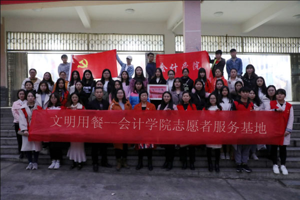 为加强学生文明修身,营造良好的校园用餐环境和饮食文化,进一步促进学生养成良好的饮食和生活习惯。会计学院于2018年12月起,在娄底职业技术学院学生食堂开展了志愿者基地“文明用餐”活动。本次活动面向全体在校学生,由会计学院学工副院长禹云、学生党支部组织委员谭雪晴、宣传委员陈为、团总支书记胡婷、学工干事李祖湘及学生党员、预备党员成立的文明劝导志愿者小组共同负责实施。