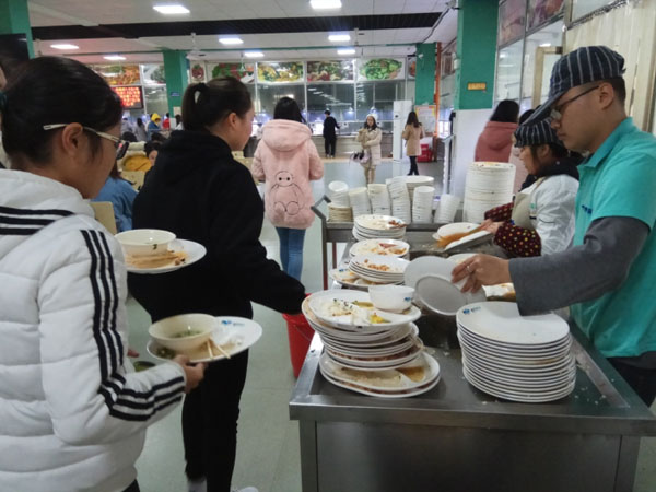 活动开始后,文明劝导志愿者小组成员分批在每天的早、中、晚对学生食堂存在的就餐插队、饭后餐盘与垃圾残留餐桌、携带一次性饭盒出入食堂等不文明现象进行文明劝导并纠正。在身穿红色志愿者服的文明劝导志愿者们一天天的努力下,同学们渐渐感受到了文明就餐的重要性,越来越多的同学主动排队就餐、餐后清理桌面卫生、将餐具送到回收点。相信在长期的努力下,一定能将学生食堂建设成一个文明的用餐环境。(会计学院组宣部)