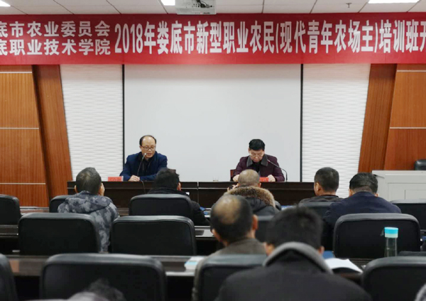 12月6日下午,2018娄底市新型职业农民(现代青年农场主)培训班在我校综合办公楼101报告厅开班。娄底市农业委科教科长吴跃峰、学校继续教育学院院长王自然、继续教育学院副院长李甄、邓喜培,新化县农业局科教股的领导,来自新化、涟源、冷江及娄星等县市(区)的50名农民学员参加了开班典礼。