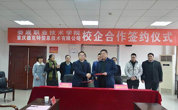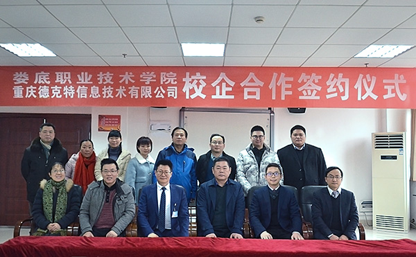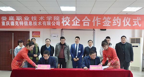 1月9日,我校与重庆德克特信息技术有限公司专业共建签约仪式在综合楼会议室举行。我校副校长金建雄、周志和,德克特公司董事长呙坤宏,副总经理黄磊、周继松,湖南分公司总经理呙紫骏与我校艺术设计学院、招生就业处、教务处负责同志出席仪式,同襄盛举。
