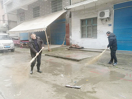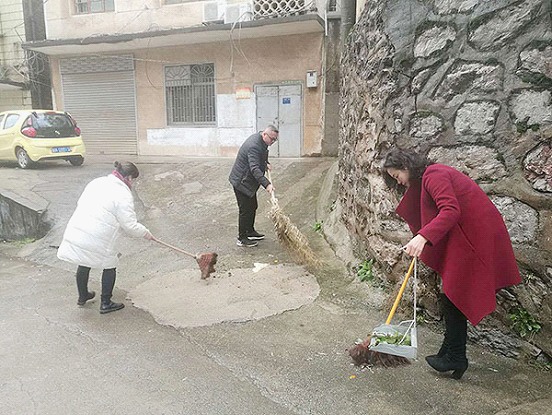 1月11日下午,公共课部主任付鹏、副主任曾晓杰、申再林组织公共课部的老师来到月塘社区何家巷开展卫生清扫活动。