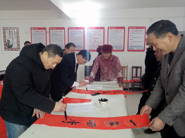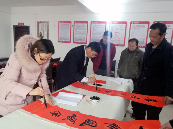 1月24日,学校扶贫工作组办公室主任、组织部部长吴文贵带领宣传部部长王宗凡、信息工程学院院长刘罗仁及我校书法家等一行7人,走进涟源市白马镇建新村,将博大精深的传统书法艺术带进贫困村,现场挥毫泼墨为村民写春联、送春联近100幅。