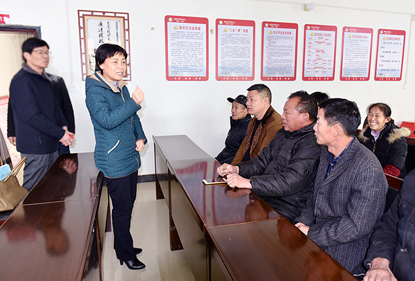 在建新村村部会议室,李文莲与该村困难老党员,村支委两委成员、乡镇扶贫干部,学校驻村扶贫队员们亲切交流。