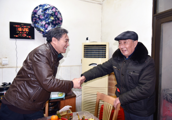1月29日是农历小年,校长朱忠义、党委副书记王健龙在党政办主任欧芳、组织部部长吴文贵等的陪同下,看望慰问了我校离休老干部王庭义、刘功。