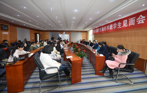 讲座结束后,专家们又召开了德国留学定向培养班学生见面会。梁凌洁主持,朱忠义,朱艳平,医学院校区各部门、二级学院负责人,定向培养班班主任及学生参加。