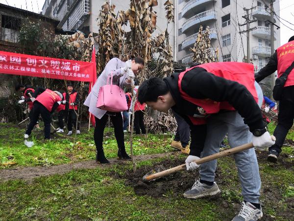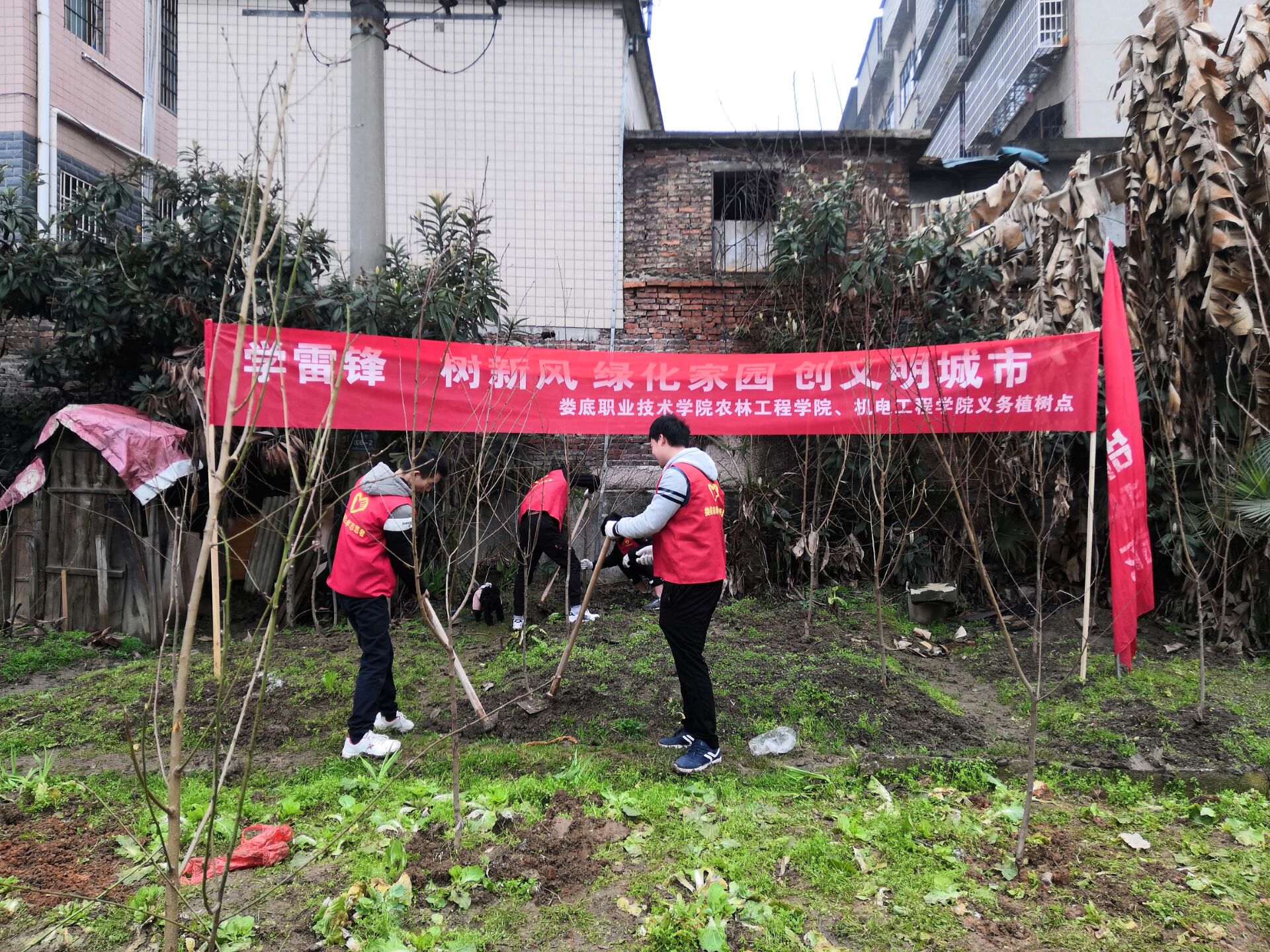 植树造林,青山不老。在植树节即将来临之际,为了弘扬雷锋精神,美化地球家图,2019年3月10日机电工程学院协同农林工程学院在娄星南路铁路沿线鼎新驾校附近的空地上共同开展三月学雷锋精神的植树活动。用自己的双手种下一棵棵象征希望的树苗,为美丽家图增添一抹新绿。本次活动由我院团总支书记邓腾带领。
