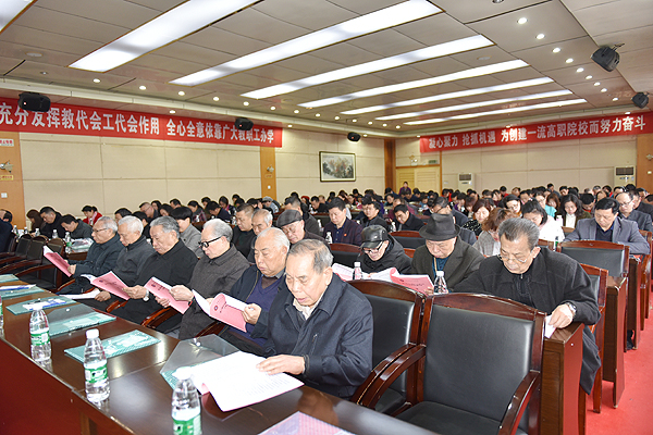 在下午召开的第二次全体会议上,与会代表审议并通过了学校工作报告、工会工作报告、《学校2018年财务收支情况及2019年度财务预算方案编制工作报告》、《2018年度工会经费审查报告》、《教师系列、实验技术系列职称评审实施细则》、《教代会提案处理报告》等决议。