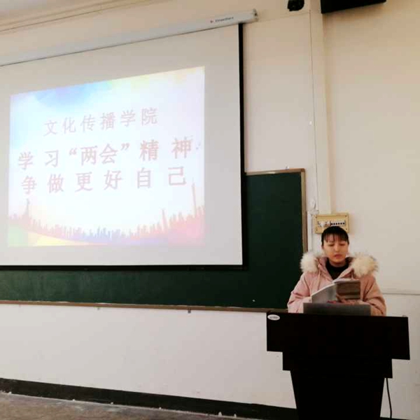 为深入贯彻学习全国两会精神,积极引导青年学生加强学习、关注时事热点。3月27日12:00,文化传播学院在北科楼101会议室举行“学习两会精神,争做更好自己”的主题活动。学工院长贺建良、学工干事胡勇为以及学生会全体成员参加。团总支副书记李悦覃主持。