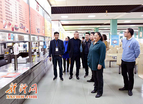 图为西藏自治区教育厅内地西藏班(校)管理中心主任金海(右三)一行查看学生食堂