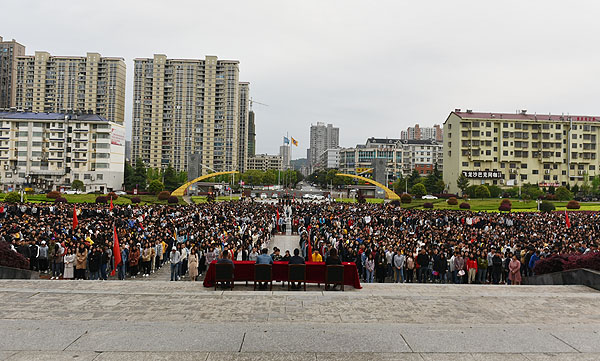 4月10日,我校在文化广场举行2019年学生国家安全主题教育活动启动仪式。校党委委员、副校长周志和,学生工作处处长李规,校团委书记刘媛,校保卫处副处长伍琳在主席台就坐,学工处相关工作人员、各二级学院学工副院长、辅导员、17、18级全体学生参加。活动由李规主持。