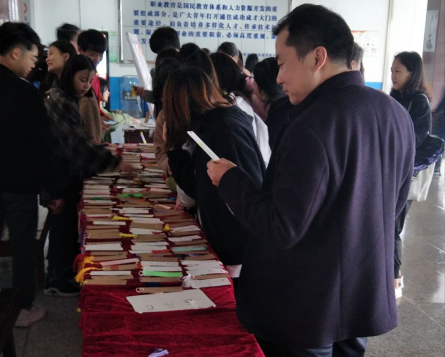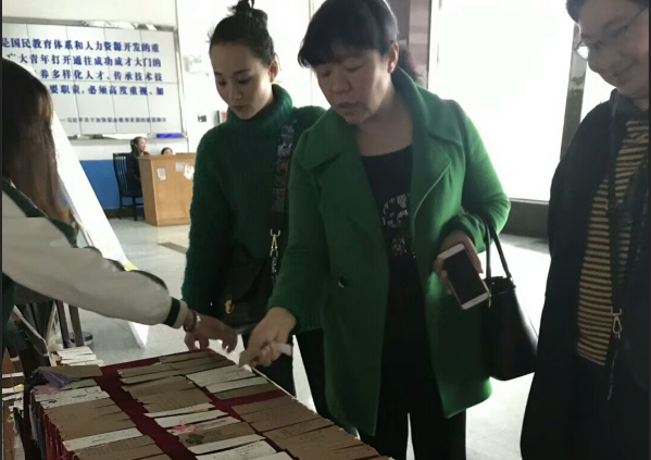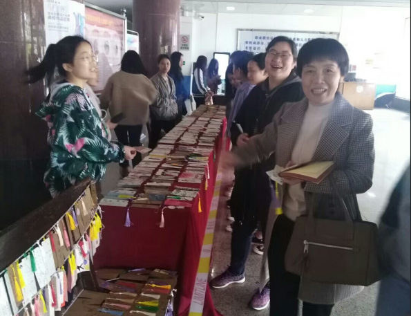 3月28日,1000副参赛作品集中在主教楼大厅进行展示与义卖,老师和同学都积极主动参与活动。其中,学校党委书记李文莲更是以100元钱购买了两张书签的举动奉献了自己的爱心。