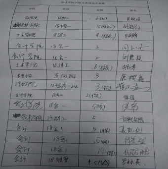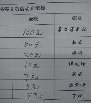 书签义卖部分金额登记