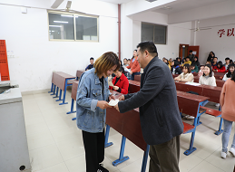 4月12日,会计学院在主教楼218教室举行此次书签设计大赛的颁奖典礼、受捐仪式。会计学院党总支书记兼院长蒋美群、会计学院学工副院长禹云、会计学院团总支书记胡婷担任颁奖嘉宾,并依次为获奖同学进行颁奖。蒋美群和禹云为18财管一班的两位西藏受捐学生----强巴洛珠和白玛央金发放了义卖活动的筹集资金。蒋美群进行总结发言:“赠人玫瑰,手有余香,希望同学们能发扬无私奉献的雷锋精神,传递爱心,尽自己所能去帮助需要帮助的人。”本次活动由会计学院团总支负责实施。(会计学院组宣部)