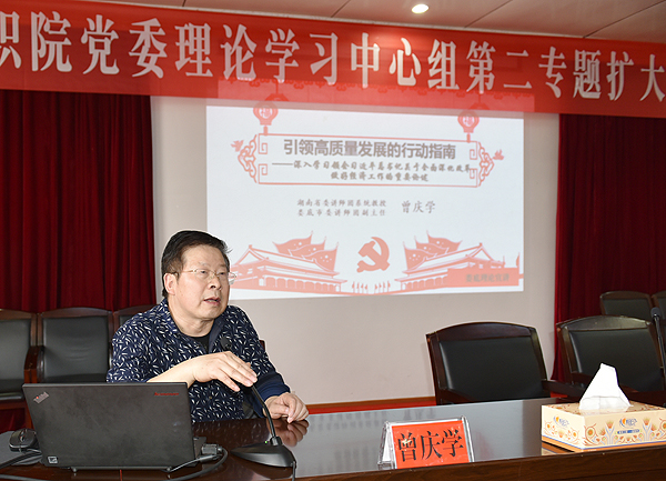 在第一环节,曾庆学作题为《引领高质量发展的行动指南——深入学习领会习近平总书记关于全面深化改革、做好经济工作的重要论述》的辅导报告。他系统总结了习近平新时代中国特色社会主义经济思想的主要内容与核心要义、战略目标,解读了习近平经济思想的丰富内涵和突出贡献,提出了贯彻落实习近平总书记关于做好经济工作重要论述的实践要求。他强调,当前尤其要坚持稳中求进的工作总基调,保持战略定力,坚持底线思维,发扬钉钉子精神,一步一个脚印向前迈进,在推动高质量发展上取得实实在在的成绩。
