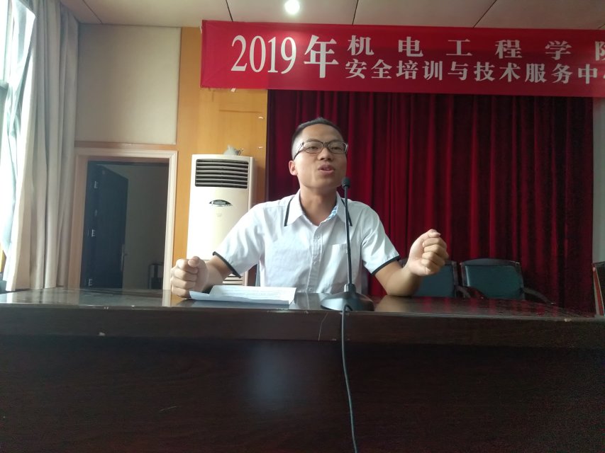 4月26日,机电工程学院安全技术培训与技术服务中心在主教楼报告厅举行2019年电工考证培训开班仪式,机电工程学院院长陈育新、副院长罗正斌、副院长王税睿、安全培训与技术服务中心主任肖志江出席现场。本次活动由肖志江主持。