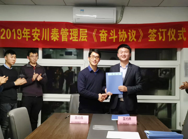 公司与核心管理层签订《奋斗协议》(右一为周舟)