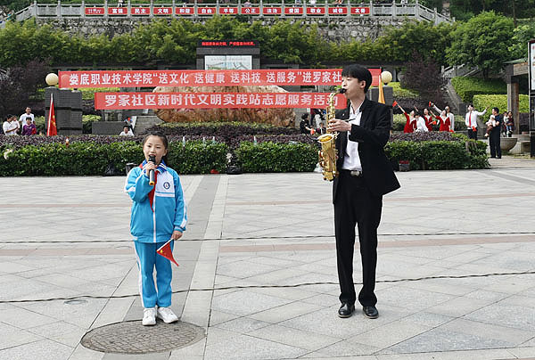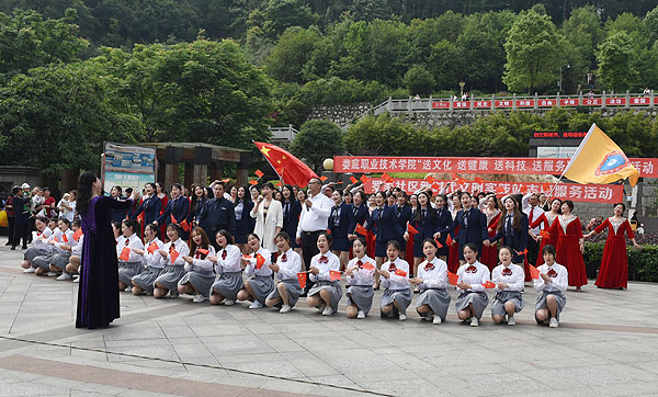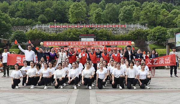 5月22日的珠山公园北门广场,红旗招展,歌舞翩跹。我校“送文化、送健康、送科技、送服务”(简称“四送”)进罗家社区活动在这里举行。校党委副书记王健龙,副校长周志和,大科街道办事处党工委副书记、行政主任李治,罗家社区党总支书记彭春华,党总支副书记、行政主任彭建江,我校团委书记刘媛出席启动仪式,王健龙、周志和、李治、彭春华分别在仪式上致辞,表示了对我校与罗家社区互联共建“和谐社区”的美好展望,并祝愿本次“四送”活动圆满成功。