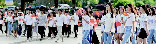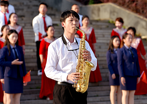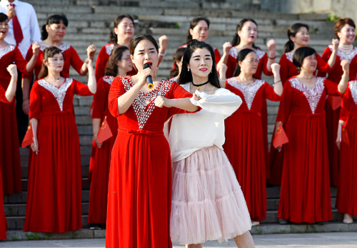 5月22日的珠山公园北门广场,红旗招展,歌舞翩跹,娄底职院“四送”活动来到了这里。师生们给当地居民带来了《歌唱祖国》、《我的祖国》、《我和我的祖国》、《共筑中国梦》等精彩合唱表演。