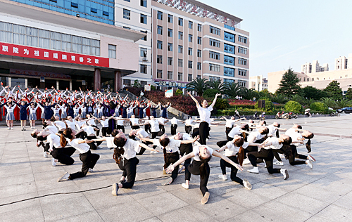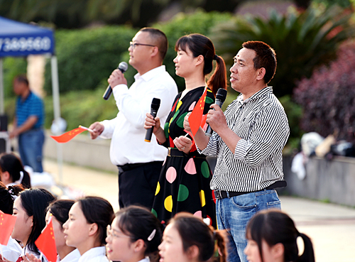 娄职师生列队同唱《歌唱祖国》、《我和我的祖国》、《共筑中国梦》,歌声气势磅礴,恢弘激昂。青年学子翩翩起舞,这既是对祖国的礼赞,亦是对娄底职院美好未来的殷切期许。