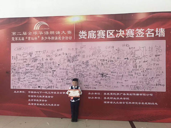 5月26日下午,由我校协办的第二届全球华语朗诵大赛暨第五届“曹灿杯”青少年朗诵展示活动娄底赛区决赛在新培训楼报告厅落下帷幕。