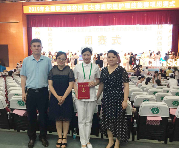 2019年全国职业院校技能大赛护理技能(高职组)赛项于6月4日在重庆医药高等专科学校圆满落下帷幕。我校护理专业1604班赵优同学代表湖南省队参赛,最终获得二等奖。
