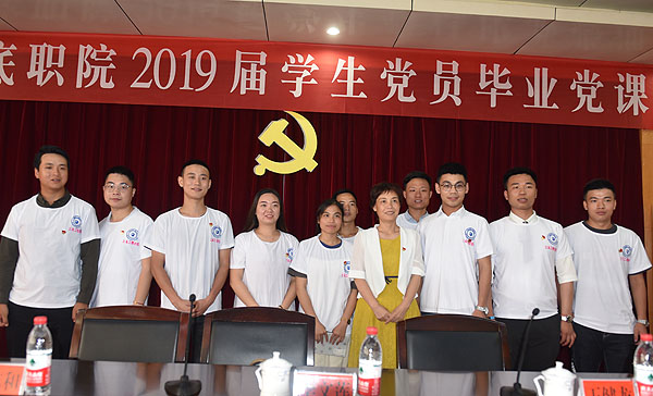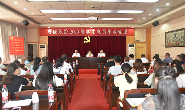 6月20日上午,我校2019届学生党员毕业党课在主教学楼多功能报告厅举行。党委书记李文莲以《时刻牢记自己的第一身份是中国共产党党员》这一主题,为全体毕业生党员上了在校期间的最后一堂党课。党委副书记王健龙、党委委员、副校长周志和出席并在主席台就坐,组织部、党政办、宣传部、学工处、保卫处、团委主要负责人、各二级学院党总支书记、学工副院长、2019届毕业党员代表到场聆听。