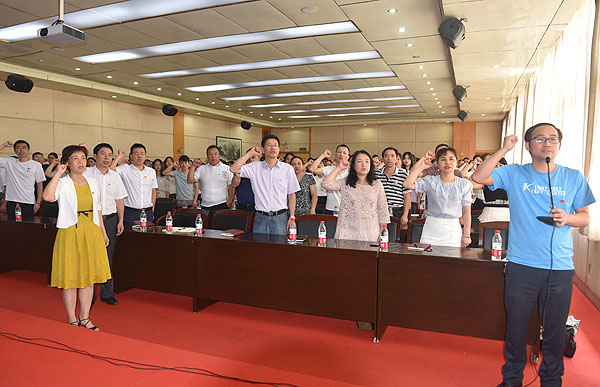 在学工处处长李规的带领下,全体与会人员重温了入党誓词。“我志愿加入中国共产党,拥护党的纲领……”庄严的声音在会场上空响起,为这场毕业党课画上了一个圆满的句号。课后,仍有许多学生党员久久不愿离去,他们围在李文莲书记身边,汇报自己求学娄职的收获,畅谈初入职场的体会,感谢母校三年的培育,不舍之情溢于言表,令人感动。(刘艳)