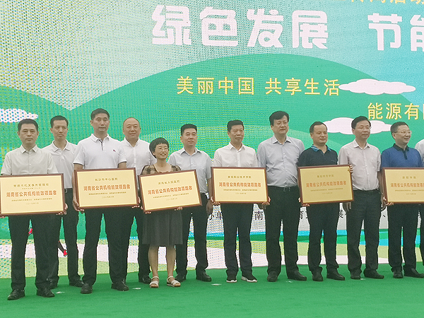 6月16日上午,湖南省第29届节能宣传周启动仪式暨湖南省公共机构能效领跑者(2019年)授牌仪式在长沙橘子洲头举行,经初选、现场复核、初审、公示等环节,有9家单位被评为我省2019年度公共机构能效领跑者单位,我校是唯一获奖的高职院校。副校长刘自斌代表学校领取了湖南省公共机构能效领跑者单位奖牌。