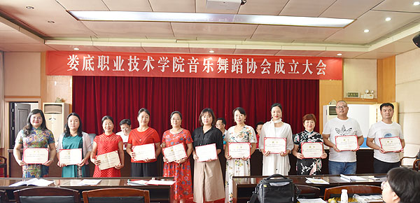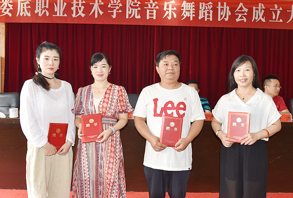 在会上,李新红作协会筹备工作报告,颜彩飞宣读娄底职院工会委员会《关于同意成立娄底职业技术学院音乐舞蹈协会的批复》,会议审读并通过了《娄底职业技术学院音乐舞蹈协会章程》,选举产生音乐舞蹈协会首届负责人名单,刘轶中当选为音乐舞蹈协会首任会长。与会领导为新当选的协会负责人及协会指导老师颁发了聘书。