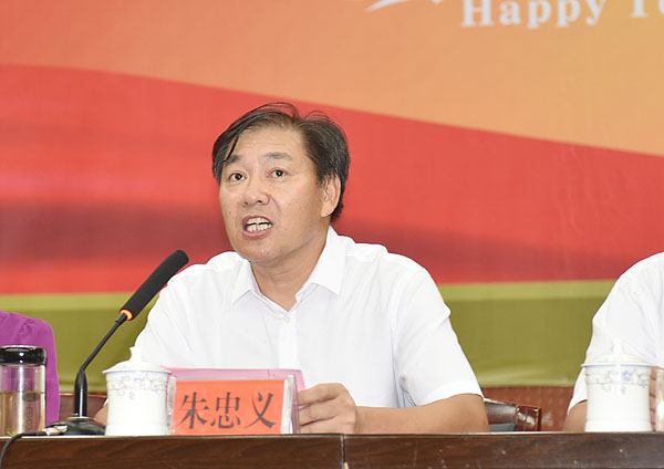 朱忠义在讲话中就如何落实教师主体地位,打造一支一流的教师队伍讲了三点意见:一是要培养具备爱党爱国情怀、爱生爱教情怀,业务精湛,能打硬仗,教学能力强、社会服务能力强、竞赛能力强的教师队伍;二是要营造有利于教师成长的校园氛围,建立骨干教师激励机制,建设有利于教师成长的软硬环境,营造风清气正的校园文化,进一步提升教师待遇,提高教师队伍的荣誉感;三是真抓实干,不断提升学校内涵实力,抢抓机遇,实现学校新一轮的跨越式发展。