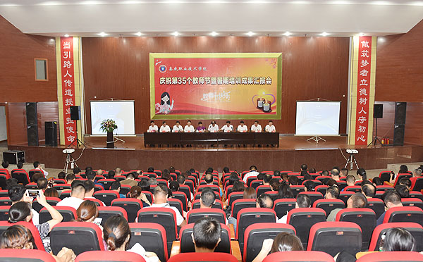 9月10日,我校在学校礼堂隆重集会,举行庆祝第35个教师节暨暑期培训成果汇报会,全体校领导、中层干部、教职工代表参会。李文莲发表讲话。会议由校长朱忠义主持。