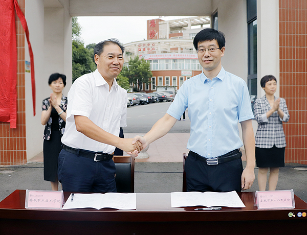朱忠义、左建辉分别代表娄底职业技术学院、娄底市第一人民医院签署了合作协议。双方约定,进一步深化“医教协同”、“产学研一体化”办学模式,加快推进医学教育改革发展,在医疗、教学、科研、学生实习实训等方面开展全方位合作、管理与指导。