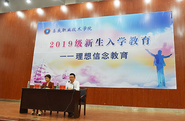 9月19日,在我校2019级大专新生开始第一周上课的时间里,党委书记李文莲为新生主讲的开学第一课如约而至。在授课礼堂,李文莲的四句箴言语重心长,循循善诱;新生们求知若渴,诵读声、鼓掌声此起彼伏,现场一片青春洋溢景象。党委委员、副校长周志和主持大会。