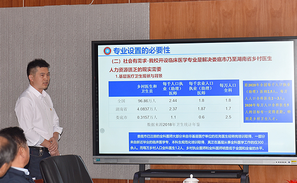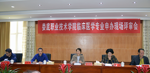 10月9日,由湖南省卫健委科教处调研员沈念梓、省教育厅职成处主任科员刘彦奇领队,湖南省中医药高等专科学校副校长、教授刘杰任组长,长沙卫生职业学院副院长、教授屈刚、岳阳职业技术学院医学院院长、副教授闾四平组成的专家组莅临我校,对我校申办临床医学专业进行现场评审。