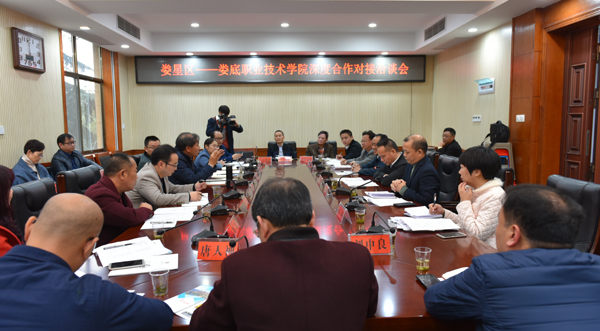 娄底职院与娄底市经济技术开发区洽谈对接。