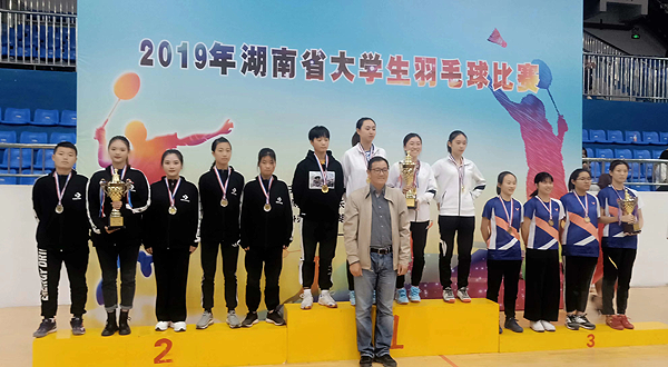 11月1日至9日,2019年“湖南省大学生羽毛球比赛”在长沙医学院举行,本次比赛由湖南省教育厅主办、长沙医学院承办、湖南省学生体育协会协办,来自全省40所高校的近500名运动员参加了比赛。经过激烈角逐,我校代表队最终斩获高职专科组女子团体比赛第二名的好成绩。(曾海军)