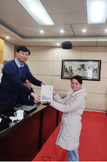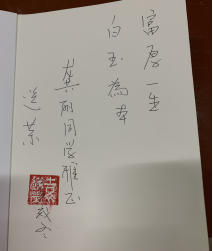 讲座结束后袁主任赠书给期间积极回答问题的同学,并亲笔签名