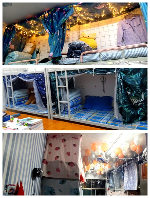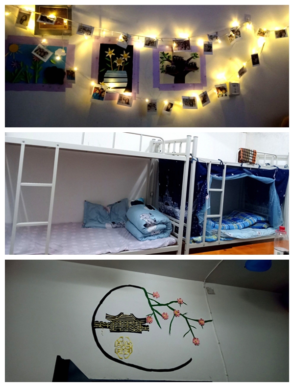 在评选过程中,各寝室都表现积极,热情的向评委们展现了他们独特的寝室设计。本次设计大赛是从寝室卫生检查、寝室名称、设计创意、美观程度和设计进度等方面进行评比,有的将千纸鹤做成门帘、有的将剪纸贴在门窗上、还有的在墙上勾勒出一幅画。同学们的寝室设计各具特色,展示出了浓厚的文学气息。