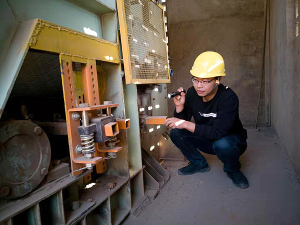 谢志勇老师在湖南江华海螺水泥厂检查皮带机清扫器