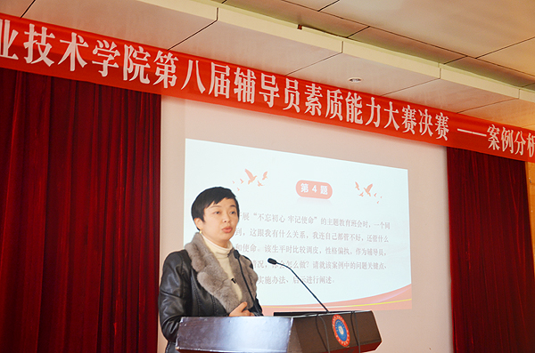 决赛分为笔试、微宣讲、案例分析三个环节,于12月上旬依次开展,全面对专职辅导员微宣讲、分析问题、思考问题、研判问题、解决问题以及理论学习应用能力进行考察。招生就业处处长戴志鹏、校团委书记刘媛、学工处心理辅导师阳帆担任决赛案例分析评委,教学督导团团长吴莲贵、校党政办主任欧芳、艺术团团长刘轶中、组织部副部长张波担任决赛微宣讲评委。