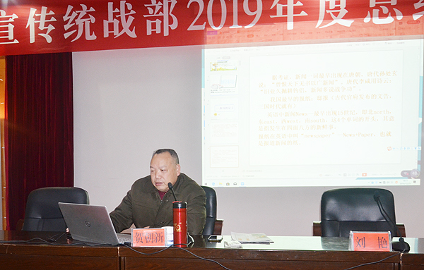 12月25日,娄底职院宣传统战部《娄底职院》报、校广播站2019年度总结表彰大会暨新闻知识讲座在主教学楼多功能报告厅举行。宣传统战部部长王宗凡,宣传统战部指导老师刘艳、李莉、欧阳琦在主席台就座。校报、广播站成员、部分新闻与摄影爱好者聆听了讲座。