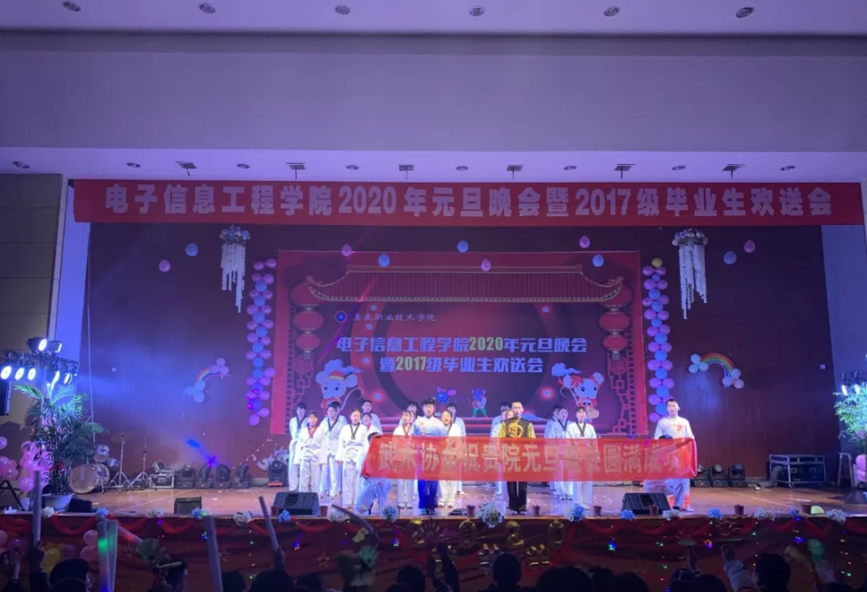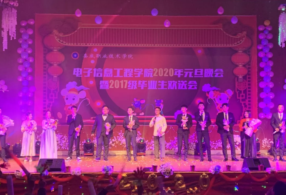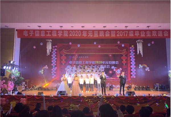 12月26日晚19:30,电信学院2020年元旦晚会暨2017级毕业生欢送会在新培楼102多功能报告厅举行。莅临本次晚会的嘉宾有:学校党委副书记王建龙,学校团委书记刘媛,党总支书记李济民,电信学院院长刘罗仁,副院长谢完成,副院长晏然,团总支书记王欢妍,电信学院各班辅导员,专业老师以及17级毕业生,各学院代表,各班级代表等。