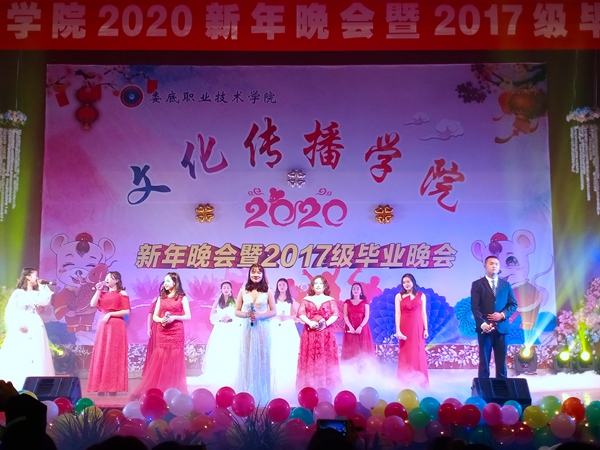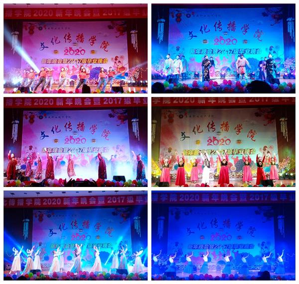 12月24日晚7点,文化传播学院在新培楼报告厅102隆重举行2020年新年晚会暨2017级毕业晚会。出席晚会的有院长刘燕、教学副院长肖付良、学工副院长贺建良、党总支副书李飞轮及学院全体师生和各二级学院代表共计1000余人。