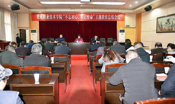 1月10日下午,我校“不忘初心、牢记使命”主题教育总结大会在主教学楼报告厅召开。省委第十巡回指导组联络员、省中小企业服务中心劳动和社会保障处副处长陈才全出席大会进行指导。党委书记李文莲作总结报告。党委副书记、校长朱忠义主持大会。全体党委委员(含近3年退休的班子成员),全体党总支部、党支部书记,副科级以上党员领导干部参加了大会。