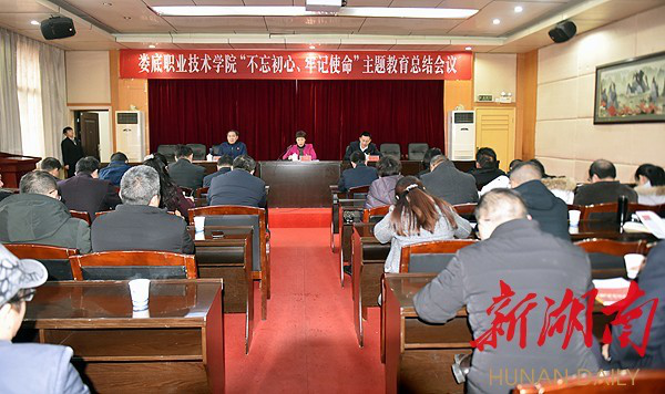 华声在线1月13日讯(通讯员 欧阳琦)1月10日下午,娄底职业技术学院召开“不忘初心、牢记使命”主题教育总结大会。省委第十巡回指导组联络员陈才全出席,娄底职院党委书记李文莲作总结报告,娄底职院党委副书记、院长朱忠义主持大会。娄底职院全体党委委员(含近3年退休的班子成员),全体党总支部、党支部书记,副科级以上党员领导干部参加会议。