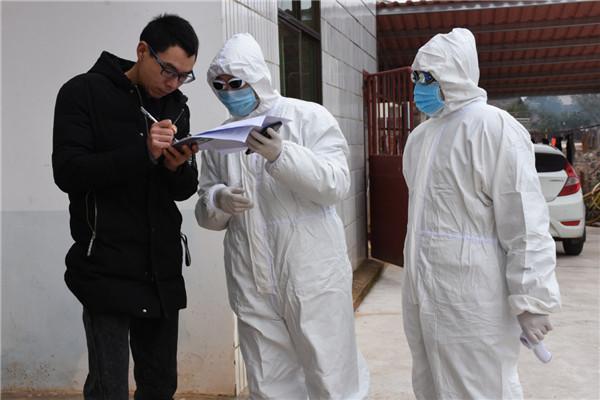 工作人员入户摸排湖北返乡人员