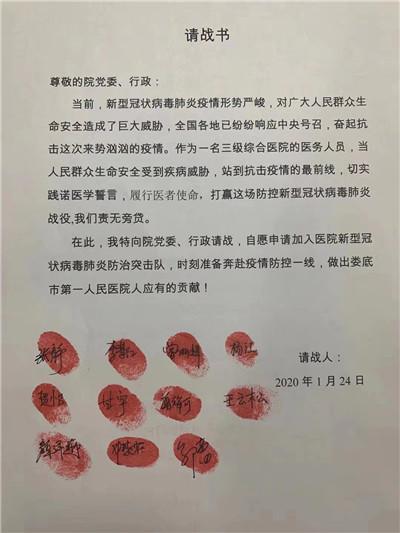 请战书上,留下了11名逆行英雄鲜红的指印