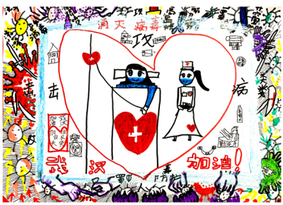 张云峰的女儿张语函今年9岁,在娄底一小读书,受父亲的熏陶,她很喜欢画画,不少作品在市里、学校获奖。得知湖北疫情后,张语函非常关心,学习新型冠状病毒的有关知识,用彩笔画了作品,表达她的情感。看着张云峰在家里创作,小语函提出了不少意见,最终父女共同创作完成了《抗击疫情,众志成城》主题“无畏”、“致敬”等系列设计作品,向抗疫一线的医护人员致敬,为故乡湖北加油。(欧阳琦)
