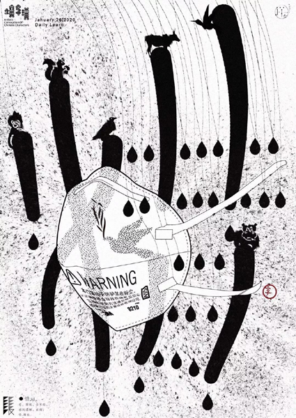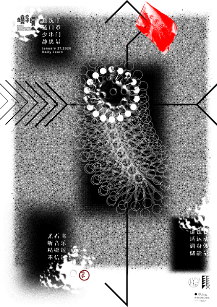 娄底职院艺术设计学院张云峰老师是湖北省孝感市人。春节前,本来他已经买了车票准备回湖北,但临时有事没走成。疫情爆发后,孝感被感染的人越来越多,仅次于武汉。他时刻关心着故乡的消息,为家人、亲朋好友担忧。张云峰的姑姑罹患慢性疾病,不久前刚刚过世,但因交通阻隔他无法回去吊唁。张云峰的弟弟在当地邮政系统,为抗疫一线运送医疗物资,张云峰每天都要与家里联系,了解到湖北抗疫的许多情况,感同身受,“湖北现在真的很难。”此时,娄星区文联号召文艺工作者创作抗疫系列作品,张云峰是湖南省设计艺术家协会会员、娄星区美术家协会副主席,他响应号召,开始创作。